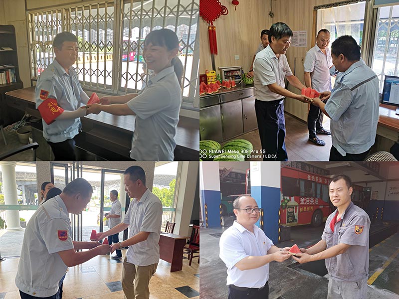 驕陽似火,酷暑難當。為切實做好常態(tài)化疫情防控下職工安全生產(chǎn)和夏季防暑降溫工作,確保一線職工平安度夏,全力以赴地為市民提供安全、便捷、舒適的出行服務(wù)。7月15日,公交發(fā)展黨總支開展以"炎炎夏日送清涼、優(yōu)質(zhì)服務(wù)戰(zhàn)酷暑""三比三爭"勞動競賽系列主題活動?偣军h委副書記、總經(jīng)理譚劍平、副總經(jīng)理陳小玲、發(fā)展公司領(lǐng)導(dǎo)班子成員一同慰問,將西瓜、涼茶等防暑降溫物品發(fā)給一線職工,把清涼送到一線,把關(guān)懷送到職工心坎。